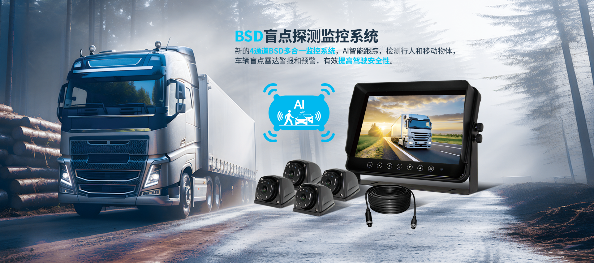 • 7英寸 AI BSD行人車輛檢測預警系統 (SF-7100AHD)